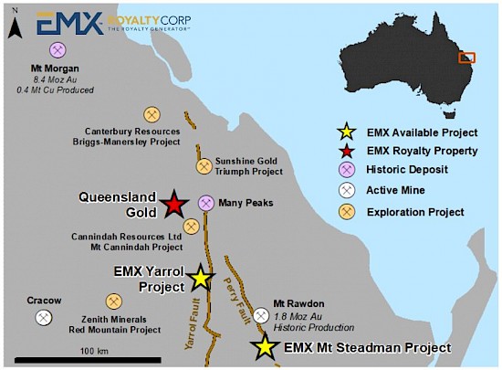 EMX’s Australian Royalty Generation Program. EMX maintains an active royalty generation program and continues to review new project opportunities throughout Australia. The Company currently holds two royalty projects in Australia (Koonenberry and Queensland Gold) and has three exploration projects in Queensland that are available for partnership. More information on these projects can be found on the EMX website (www.EMXroyalty.com).